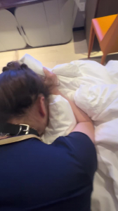 A pretty girl can lick your breasts with her tongue; she's very obedient and follows your instructions verbally.